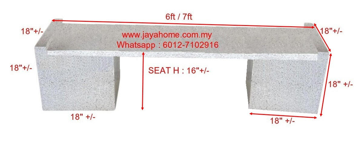 Outdoor Cement Table / Stool / Bench 洋灰室外桌子/凳子/长凳 2尺(ft)-7尺(ft) Table Square / Round 2ft / 2.5 ft / 3ft / 3.5ft / 4ft (610mm / 762mm / 915mm / 1067mm / 1220mm (+/-) Table Rect : 4ft x 2.5ft / 5ft x 2.5ft (1220mm x 610mm / 1525mm x 762mm (+/-)) Bench L : 2ft/3ft/4ft/5ft/6ft/7ft (610mm / 915mm / 1220mm / 1525mm / 1830mm / 2135mm (+/-) ) Outdoor - Table and Bench Series - Round - 033 Bench Finishing color Choice :