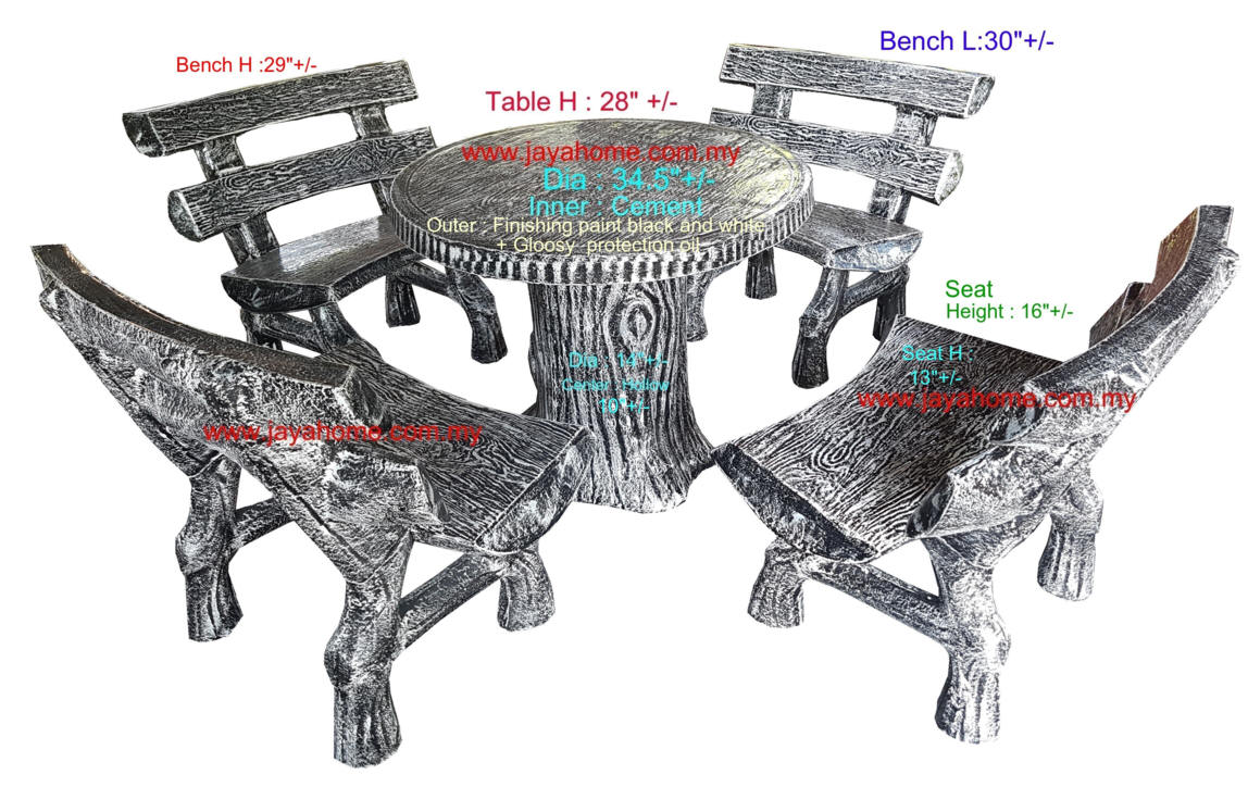 Outdoor Cement Table / Stool / Bench 洋灰室外桌子/凳子/长凳 2尺(ft)-7尺(ft) Table Square / Round 2ft / 2.5 ft / 3ft / 3.5ft / 4ft (610mm / 762mm / 915mm / 1067mm / 1220mm (+/-) Table Rect : 4ft x 2.5ft / 5ft x 2.5ft (1220mm x 610mm / 1525mm x 762mm (+/-)) Bench L : 2ft/3ft/4ft/5ft/6ft/7ft (610mm / 915mm / 1220mm / 1525mm / 1830mm / 2135mm (+/-) ) Outdoor - Table and Chair Series - Round - 001 Table / Stool / Bench Finishing color Choice : Table Top Size : Round 2.5ft +/- (set 4 chairs) / Round 3ft +/- (set 4 chairs) / Round 3.5ft +/- (set 5 chairs ) / Round 4ft +/- (set set 6 chairs) / custom made